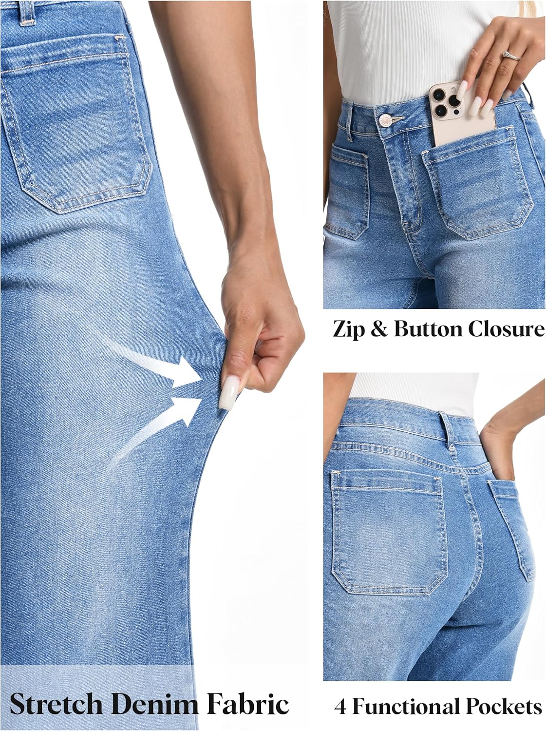 SEVEGO Tall Women’s 34/36/38 Inseam Wide Leg Jeans High Waisted Stretchy Straight Loose Trendy Denim Pants Pockets