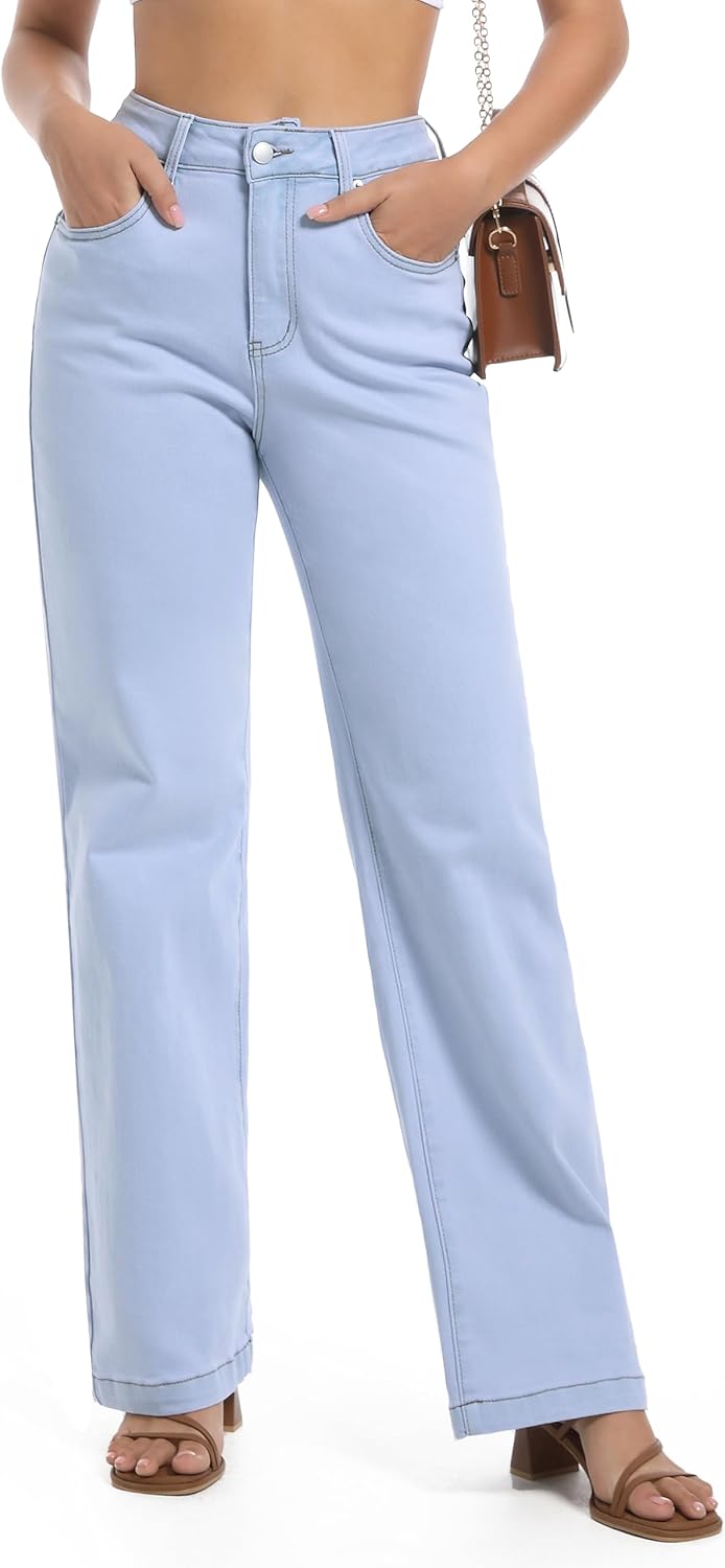 Guaile Women’s Jeans High Waisted Straight Leg Stretchy Jeans Trendy Wide Leg Tummy Control Loose Casual Denim Pants