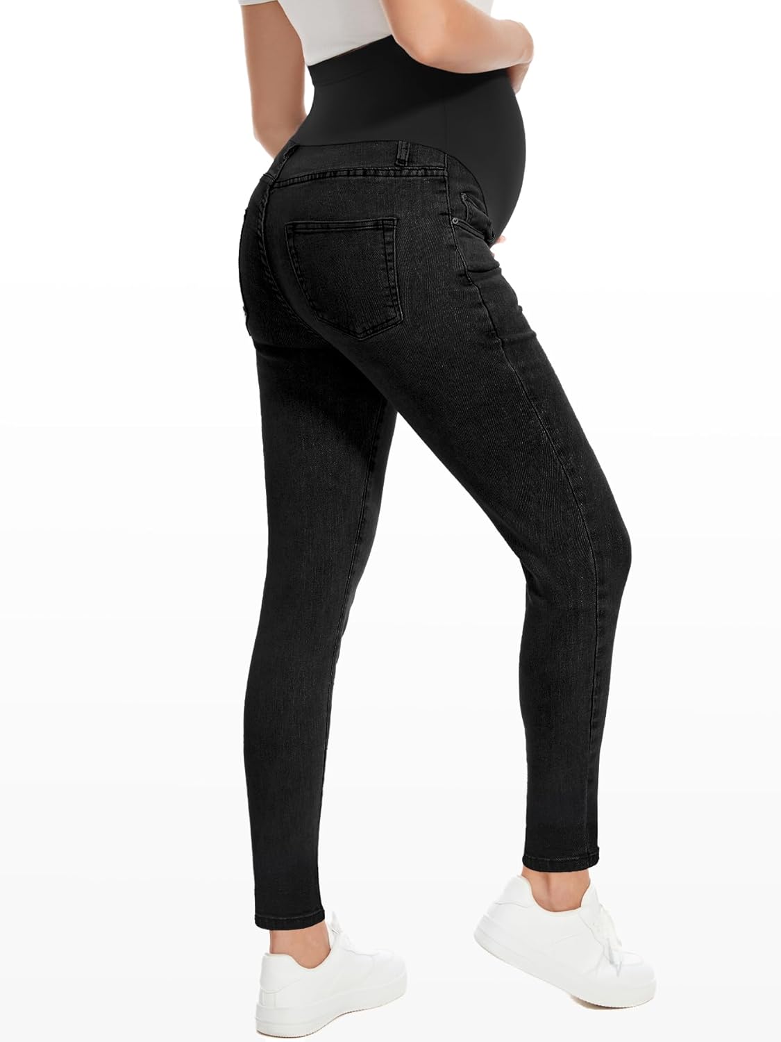 - OVER-THE-BELLY JEANS: Provides moderate support, suitable for all stages of pregnancy to wear. The high-waisted design gives you super support with the growing belly.