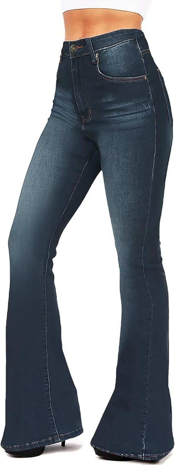 KDF Flare Jeans for Women Women’s Bootcut Bell Bottom Jeans High Waisted Stretch Slimming Bell Bottoms Jeans