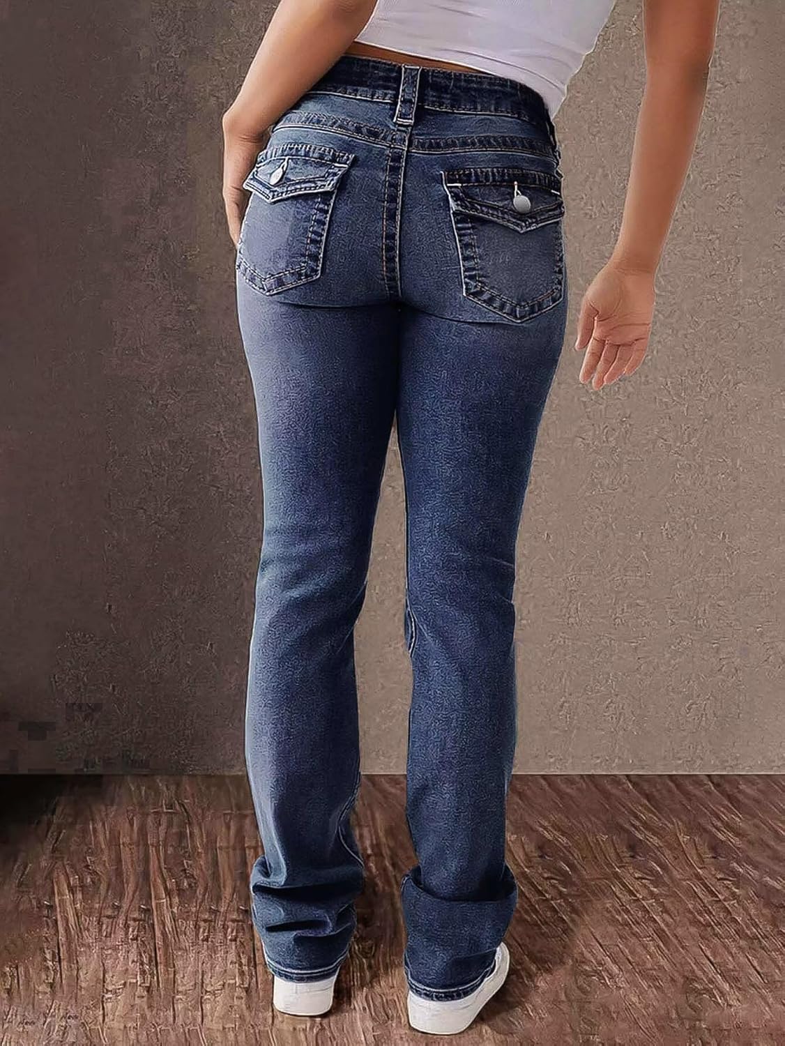 Flamingals Bootcut Jeans for Women Stretchy Mid Rise Double Button Wash Solid 90s Straight Leg Jeans
