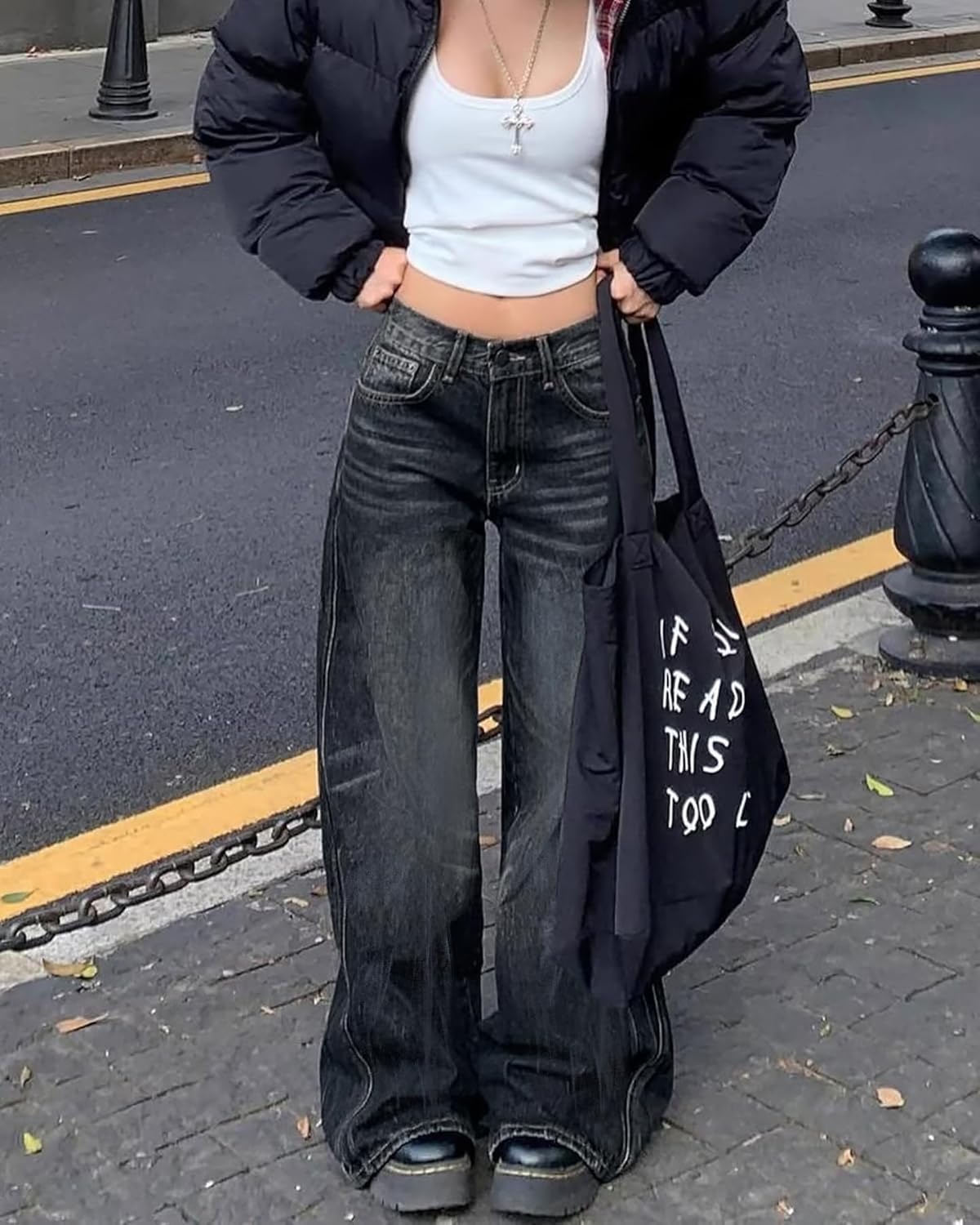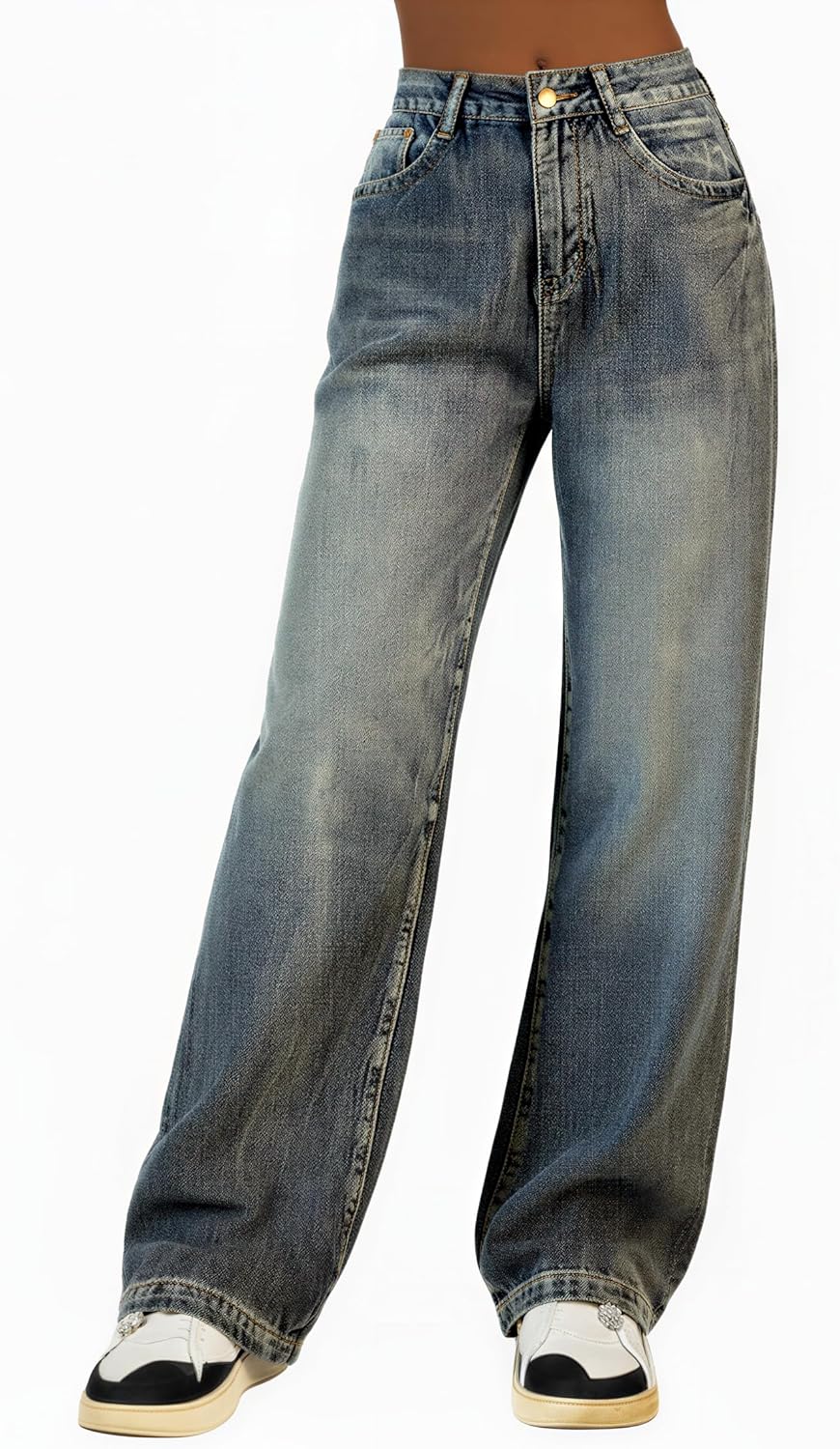 - Trendy Y2K Vintage Style: EMMIOL vintage boyfriend jeans for women with distressed design feature a fasion, loose fit. These wide leg jeans woman with zip fly and button closure,classic five-pocket design is perfect for creating Y2K vintage, hip hop, street styling.