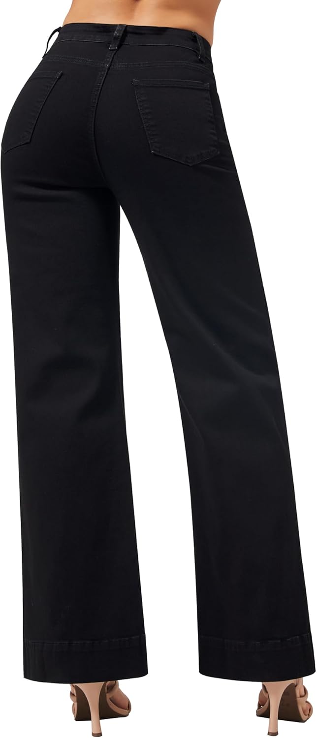 roswear Women’s Wide Leg Jeans Casual High Waisted Stretchy Baggy Loose Long Trouser Jeans
